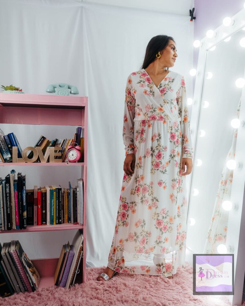 Vestido largo blanco floreado