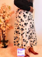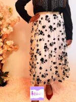 Falda midi Tul bordado blanco con flores negras