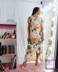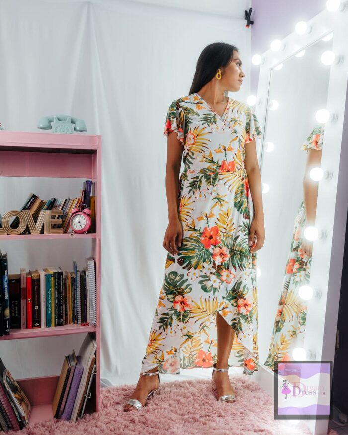Vestido largo blanco floreado